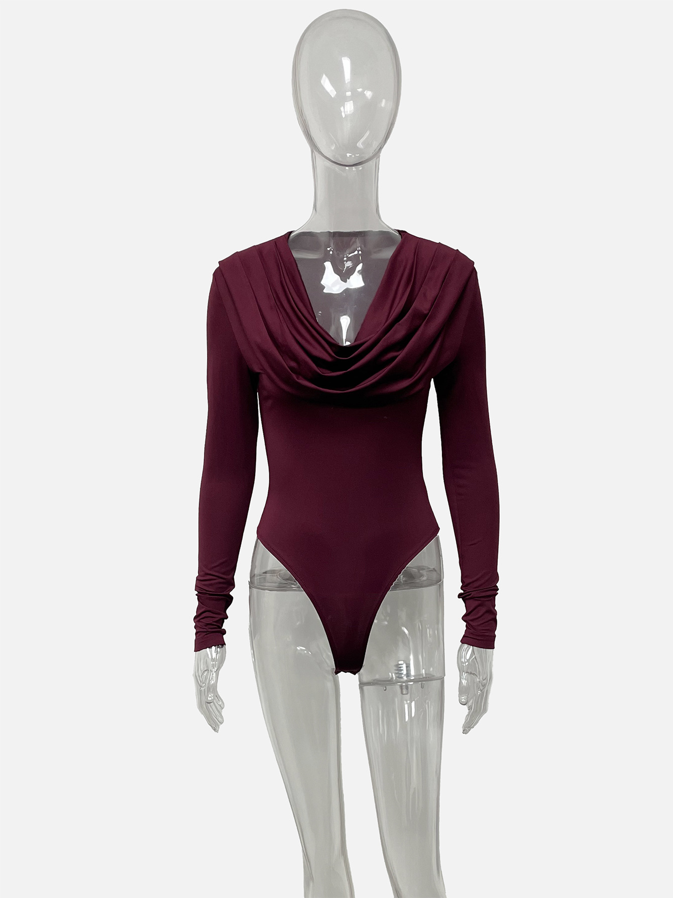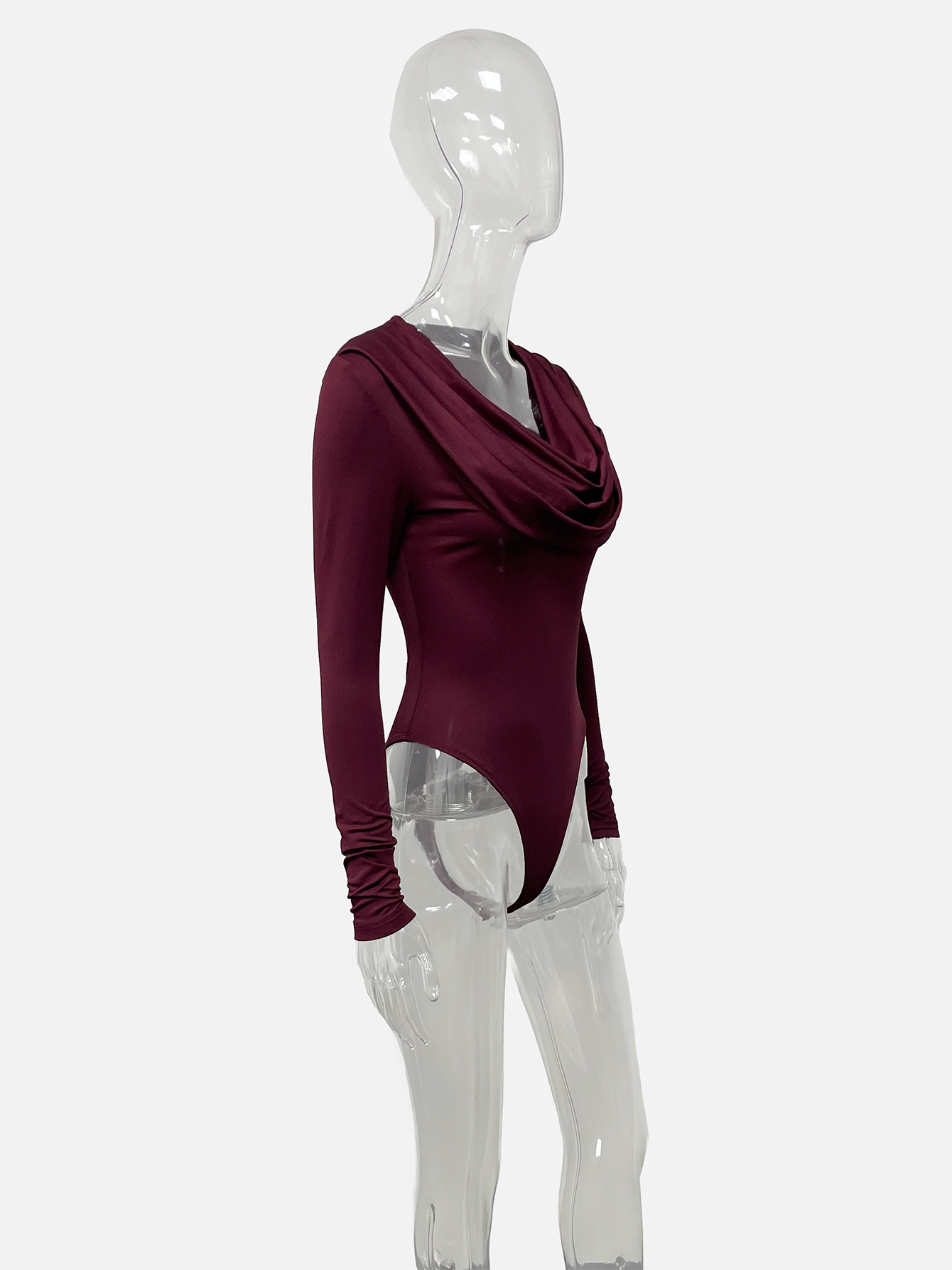 Cowl-neck Long-sleeved Figure-hugging Jumpsuit