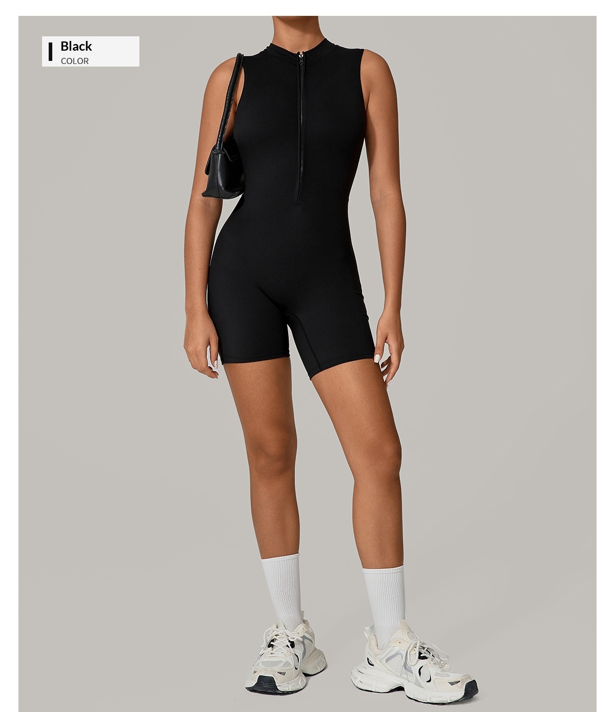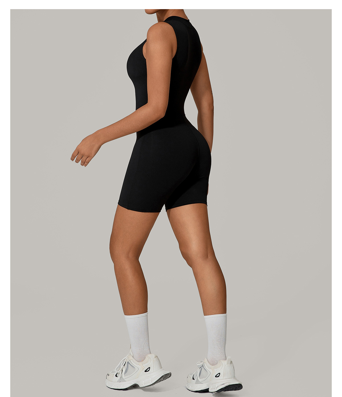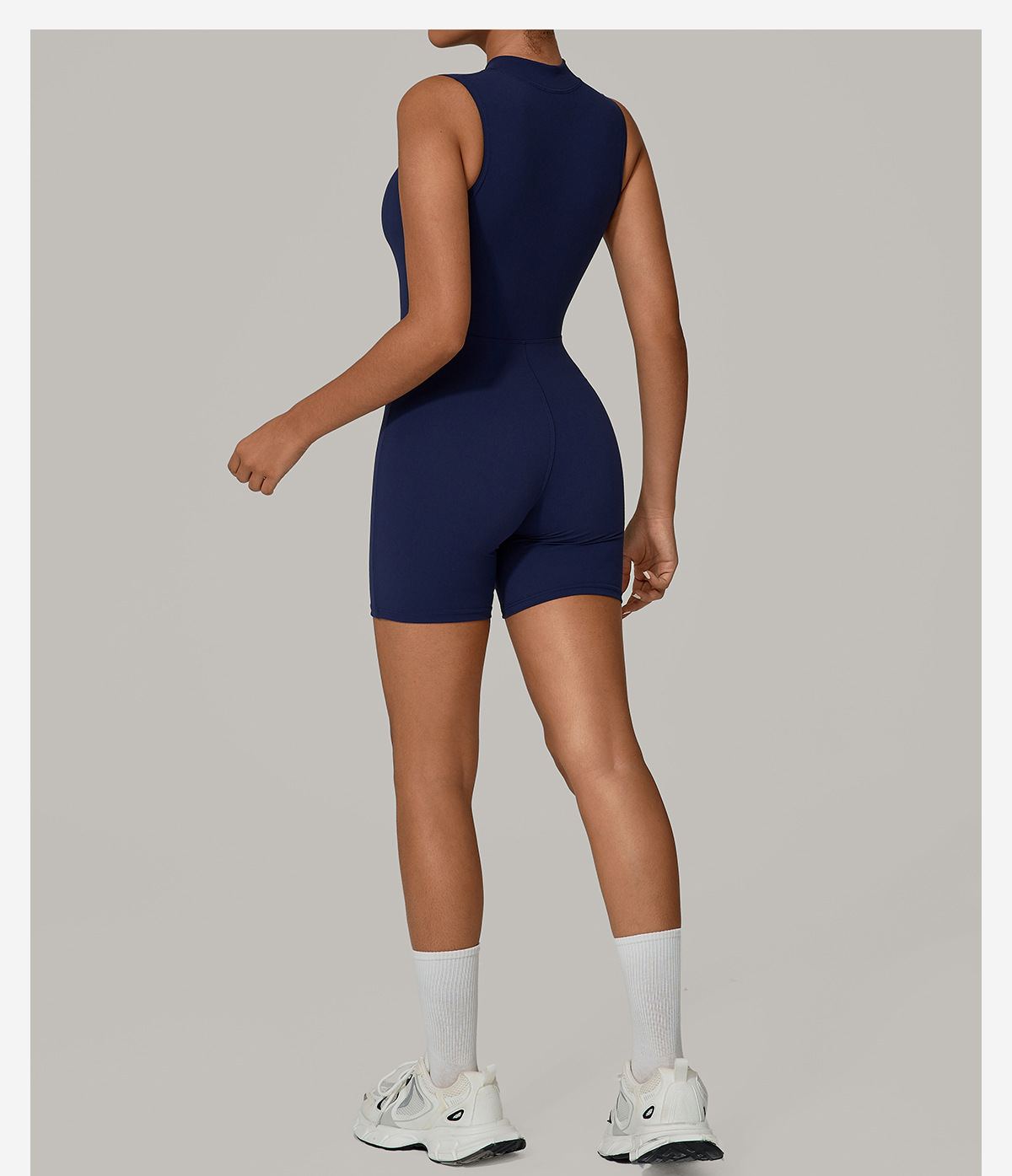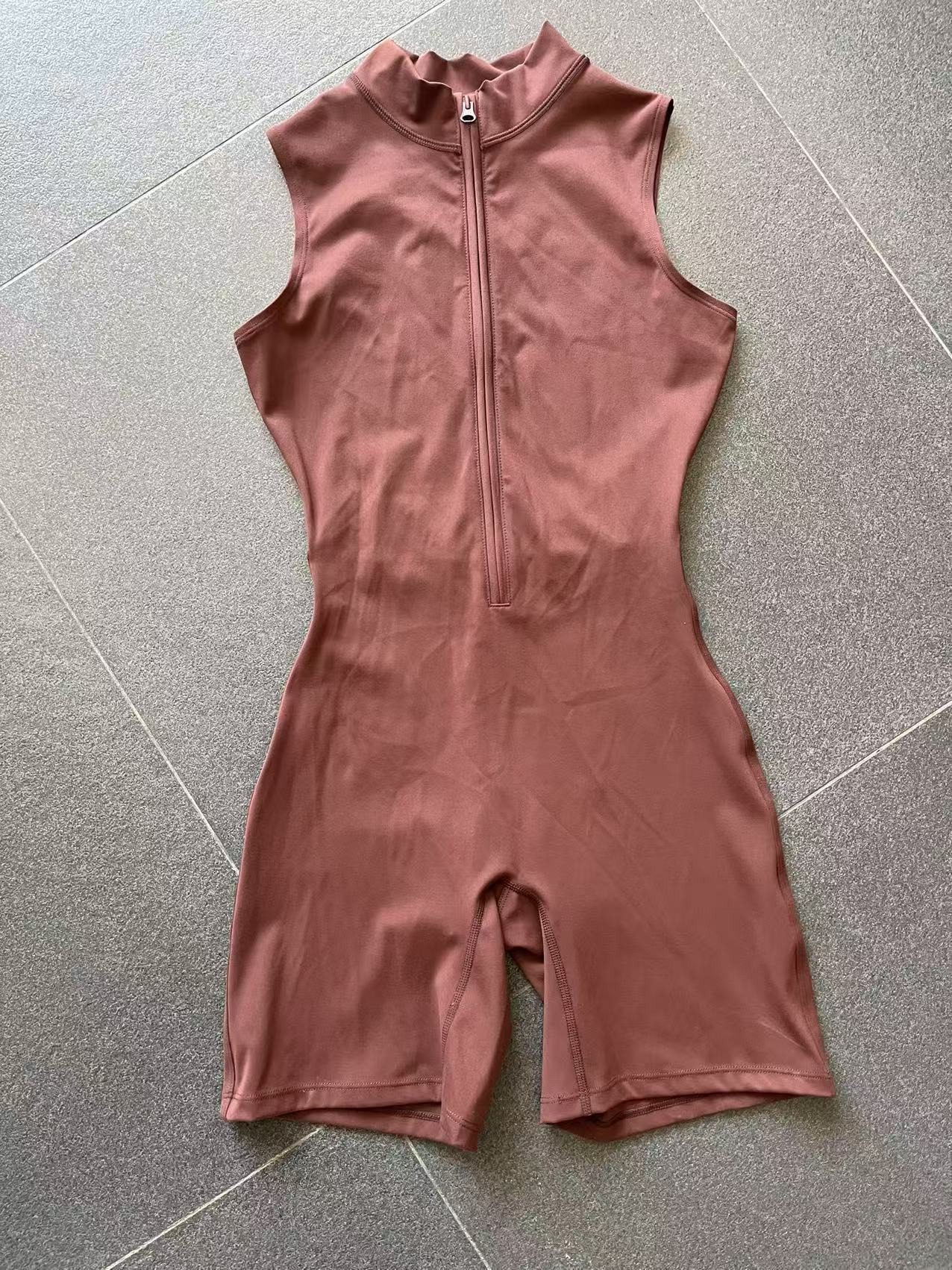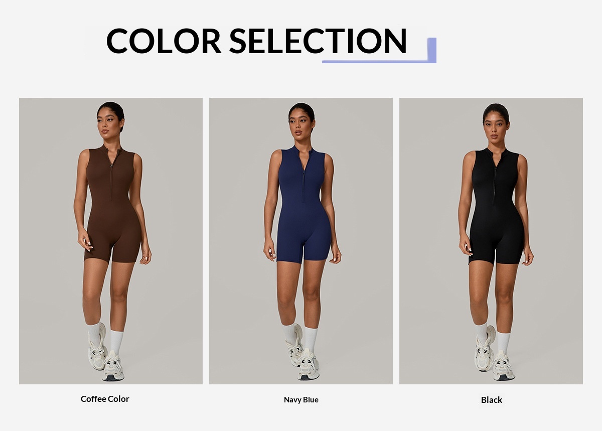 European And American One-piece Jumpsuit With Stand-up Collar, Zipper, And Sleeveless
