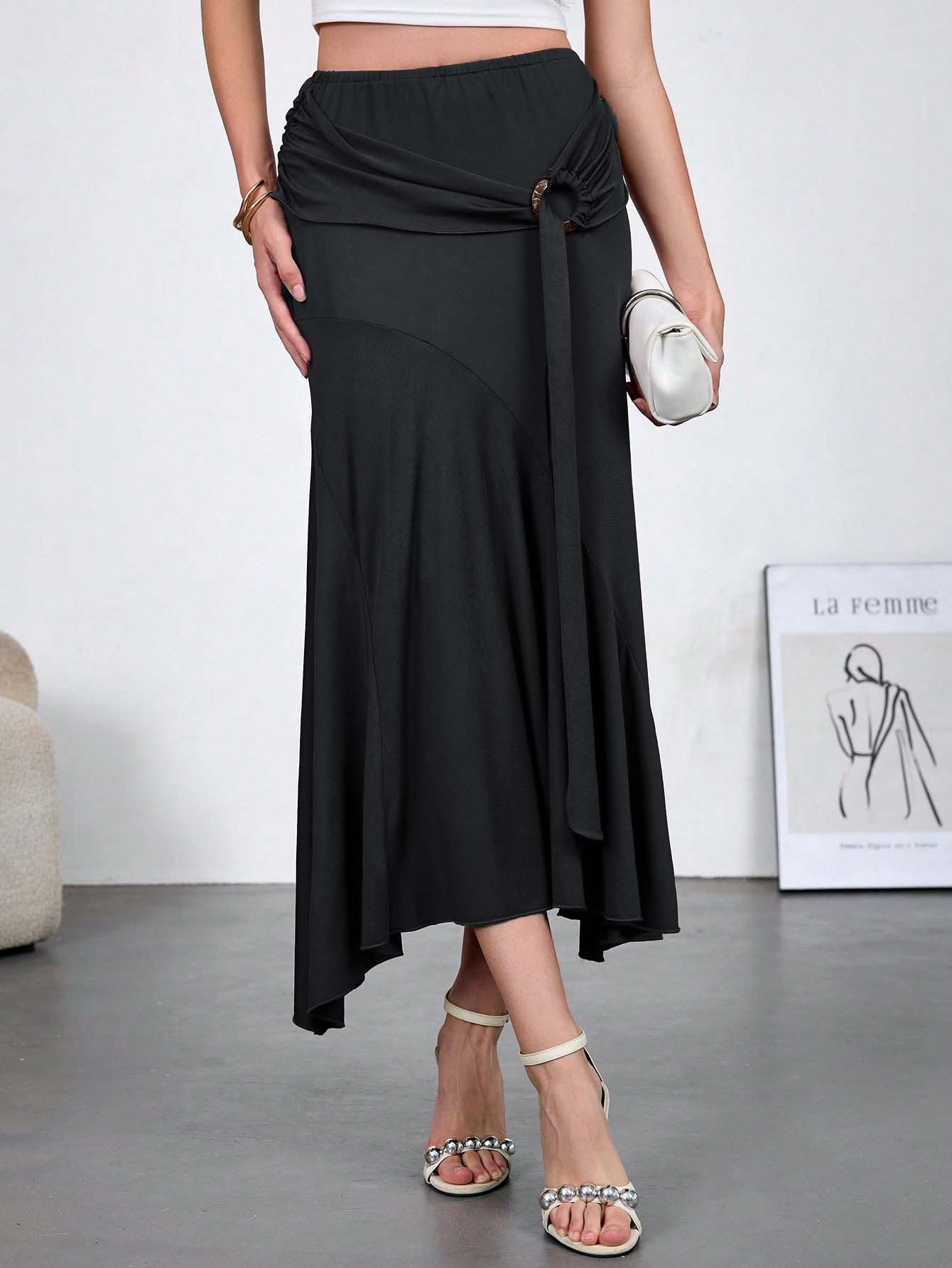Womens High-Waisted Figure-Hugging Flowy Half Skirt With Ties