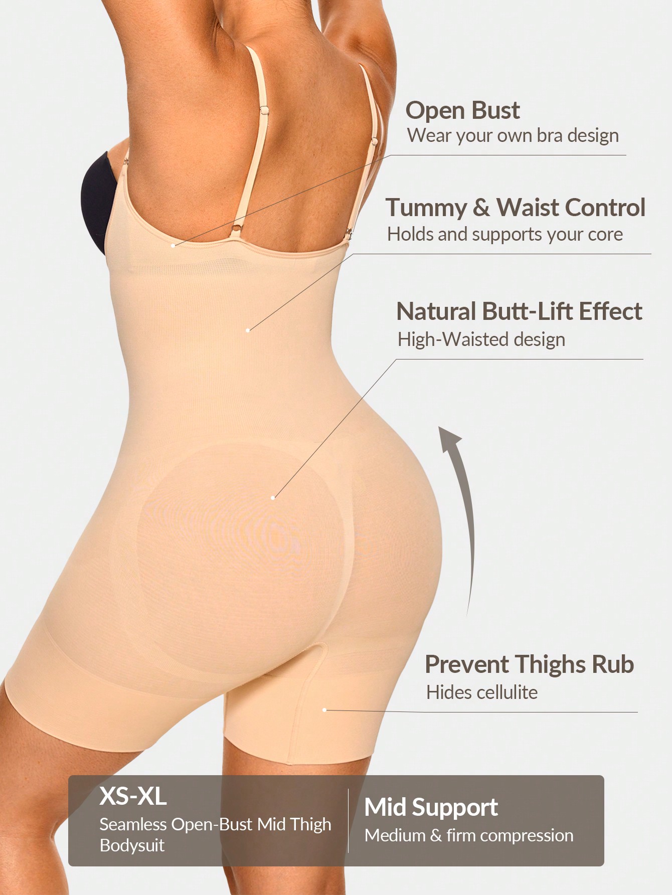 Premium UnderWire Cupped Thong Bodysuit For Women - Tummy & Waist Control With Natural Butt-Lift Effect